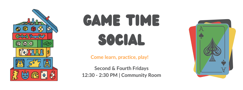 Join us in the Community Room every second and fourth Friday from 12:30-2:30 PM to play a board or card game with staff, volunteers, or fellow Members!