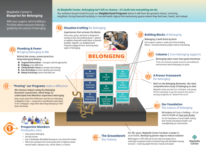 Early results show 65% of Members now feel true belonging at Maybelle Center—compared to new Members who begin in the “ambiguity” range when describing belonging in their local community.